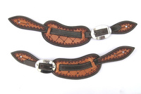Sporenriemen - US Leather - Two Tone - Tooled - Dots - graviertes Buckle Set & Conchos