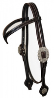 "EE Tack" Kopfstück - "V" Stirnband - Harness Leder - Clear Stones